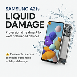 Accidentally dropped your Samsung Galaxy A21s in water, coffee, or another liquid? Our liquid damage treatment service provides a full internal inspection and professional cleaning process to give your device the best chance of recovery. We carefully strip down your phone, remove corrosion, and use ultrasonic cleaning to treat the motherboard and internal parts. ✅ Professional ultrasonic cleaning process ✅ Full inspection of internal components ✅ Increases the chance of restoring power and functionality ✅ Honest assessment of additional parts required This service is ideal for: Devices exposed to water, coffee, or other liquids Phones showing no power after contact with moisture Phones with corrosion or short-circuit issues ⚠️ Important: Liquid damage repairs cannot be guaranteed. While this treatment significantly improves recovery chances, some devices may require additional replacement parts, or in severe cases, may not be repairable. All findings will be confirmed with you before extra costs are applied. Book your Samsung A21s liquid damage treatment today to give your phone the best possible chance of survival. Want me to also make you a matching square booking image for this (same shimmer/black background style as your other A21s graphics)?