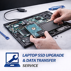 Boost your laptop’s performance by replacing your old hard drive with a high-speed SSD — startup times and app loading will be night and day. We’ll also transfer your existing files, apps, and settings to the new drive. Prices vary depending on your laptop’s make/model and required SSD size. From £110 Final quote confirmed after we assess your laptop.